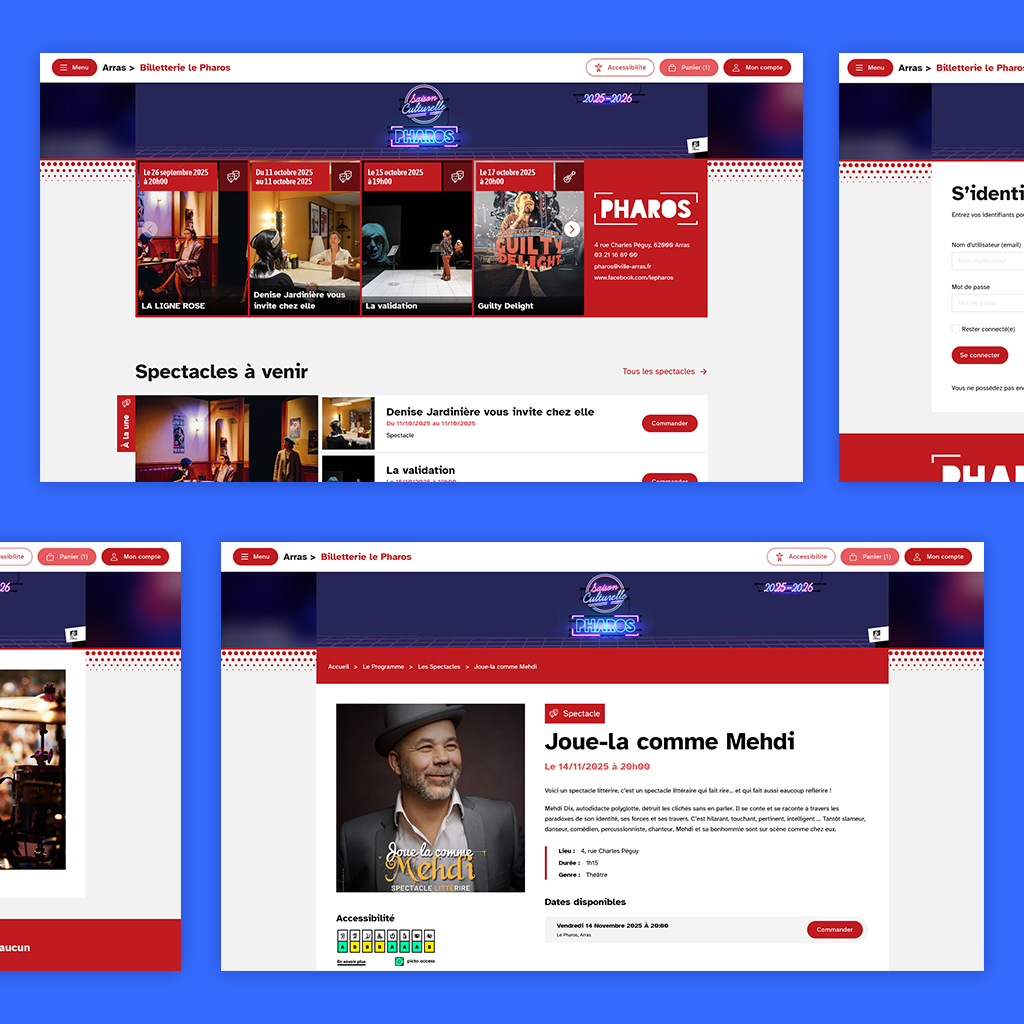 Nous avons créé une nouvelle billetterie en ligne 100% propriétaire pour le Pharos, pensée pour refléter l’identité de la Ville d’Arras et offrir une expérience d’achat fluide et accessible.