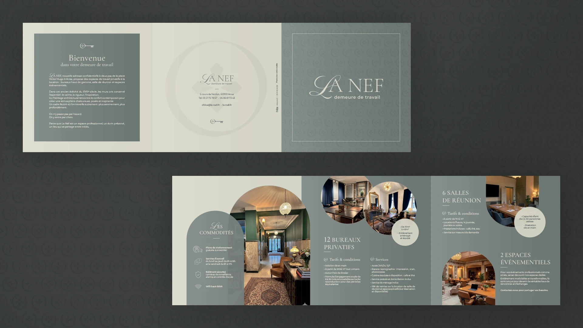 En parallèle, nous avons produit les supports physiques nécessaires à la prospection locale : plaquettes commerciales, flyers et cartes de visite. Cette approche multicanale a permis à La Nef de s’implanter immédiatement dans le paysage économique arrageois comme une référence du tertiaire haut de gamme.